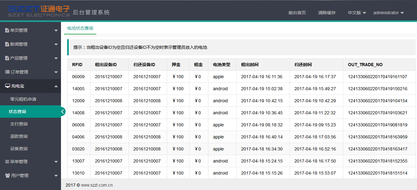 我们的运营管理平台可实现交易数据统计、终端电池监控、媒体远程分发、终端远程诊断、远程应用管理等功能,保障充电宝租借终端的持续、高效运行。
