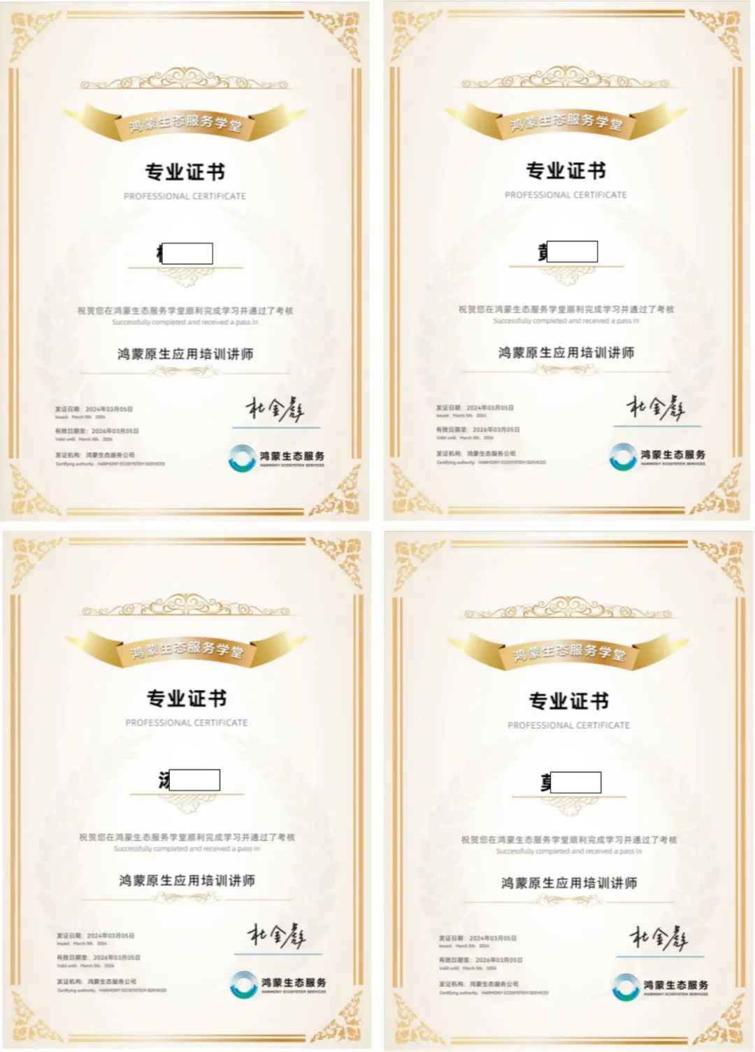 首批通过“鸿蒙原生应用培训讲师”认证的讲师证书